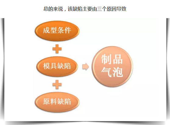 注射壓力太低、速度太快、時(shí)間和周期太短、加料量過多或過少、保壓不足、冷卻不均勻或冷卻不足、以及料溫及模溫控制不當(dāng),都會引起塑件內(nèi)產(chǎn)生氣泡。