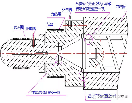(11)每次射出應(yīng)盡可能將射嘴處的余料帶出,建議采用如圖示射嘴(圖1-1)(12)桿的規(guī)格應(yīng)選用:硬質(zhì)PVC屬熱敏性塑料,其細(xì)長(zhǎng)比建議選擇17~18,螺桿,射嘴,需選用防腐蝕材料進(jìn)行相關(guān)的處理