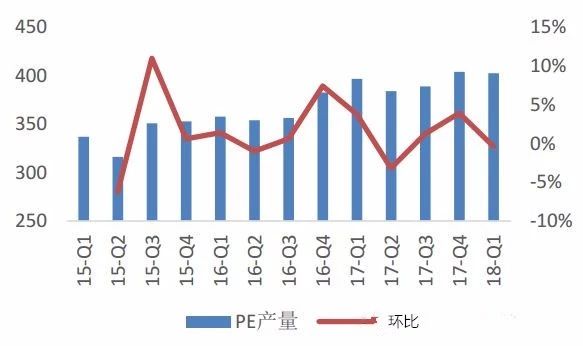 數(shù)據(jù)顯示,中國(guó)聚乙烯進(jìn)口依存度在40-45%左右,進(jìn)口依賴度較高。2018年1月份聚乙烯進(jìn)口128.9萬噸,環(huán)比增加17%。2月份由于春節(jié)假期因素進(jìn)口量下降明顯,但3月份從遠(yuǎn)洋貨物的到港情況來看,進(jìn)口量仍存較高預(yù)期。