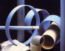 PVC在19世紀被發(fā)現(xiàn)過兩次,一次是Henri Victor Regnault在1835年,另一次是Eugen Baumann在1872年發(fā)現(xiàn)的。兩次機會中,這種聚合物都出現(xiàn)在被放置在太陽光底下的氯乙烯的燒杯中,成為白色固體。20世紀初,俄國化學家Ivan Ostromislensky和德國Griesheim-Elektron公司的化學家Fritz Klatte同時嘗試將PVC用于商業(yè)用途,但困難的是如何加工這種堅硬的,有時脆性的的聚合物。