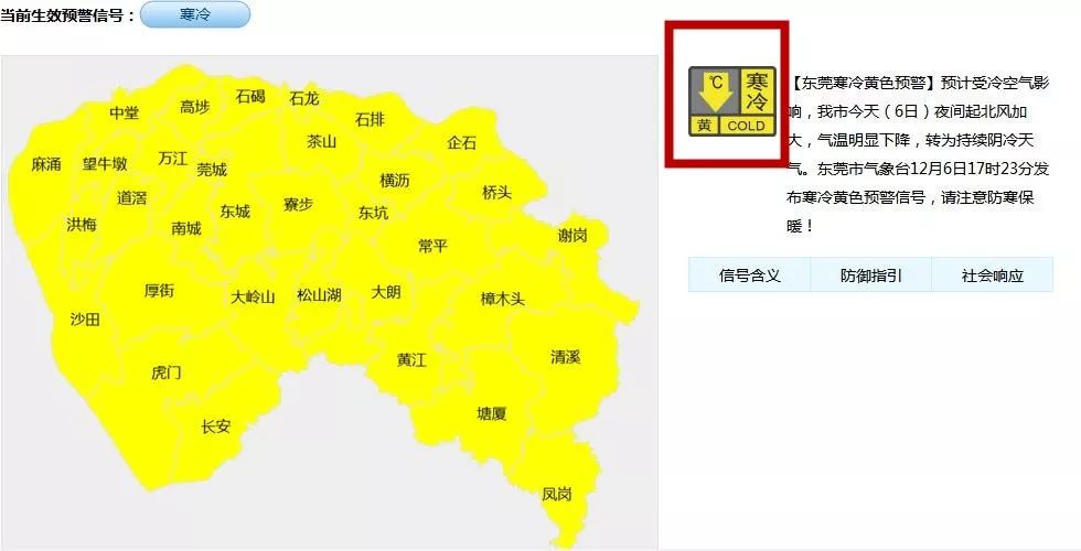 東莞氣象臺發(fā)布寒冷黃色預警!
