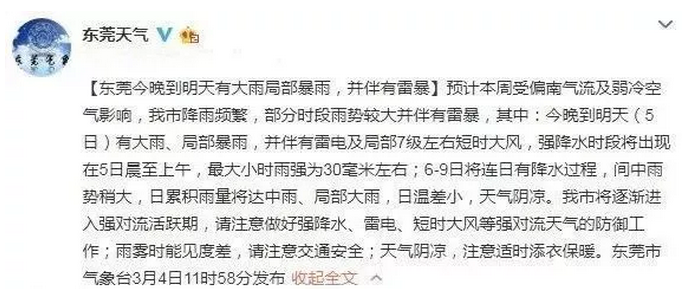 那么東莞受弱冷空氣以及偏南氣流影響未來一周全是雨雨雨+7級大風(fēng)