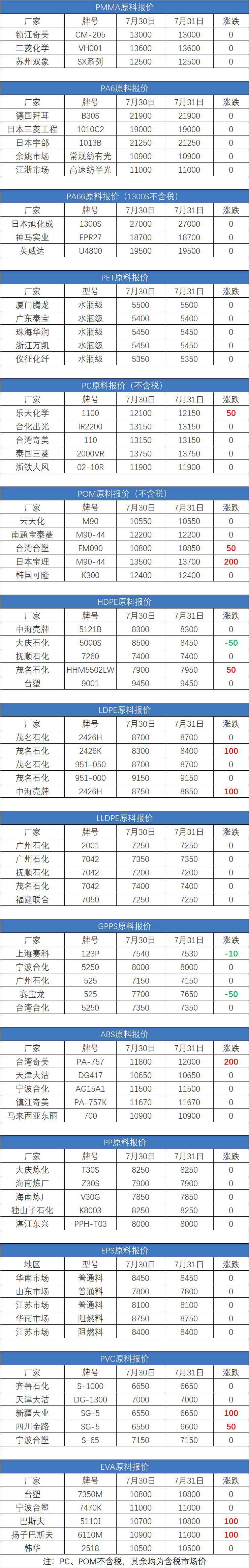 ABS:昨日國內(nèi)ABS市場價(jià)格變動(dòng)有限,部分型號(hào)缺貨,價(jià)格局部小漲,終端需求進(jìn)入淡季,成交維持剛需,市場成交不溫不火;石化廠開工繼續(xù)維持高負(fù)荷運(yùn)行,供應(yīng)量不減,但部分廠家交付前期訂單,導(dǎo)致庫存量小幅下降,目前場內(nèi)暫無利好支撐,預(yù)計(jì)今日市場價(jià)格維持區(qū)間波動(dòng),華南地區(qū)寧波臺(tái)化15A1主流市場價(jià)格參考在11500元/噸左右。(未含稅)
