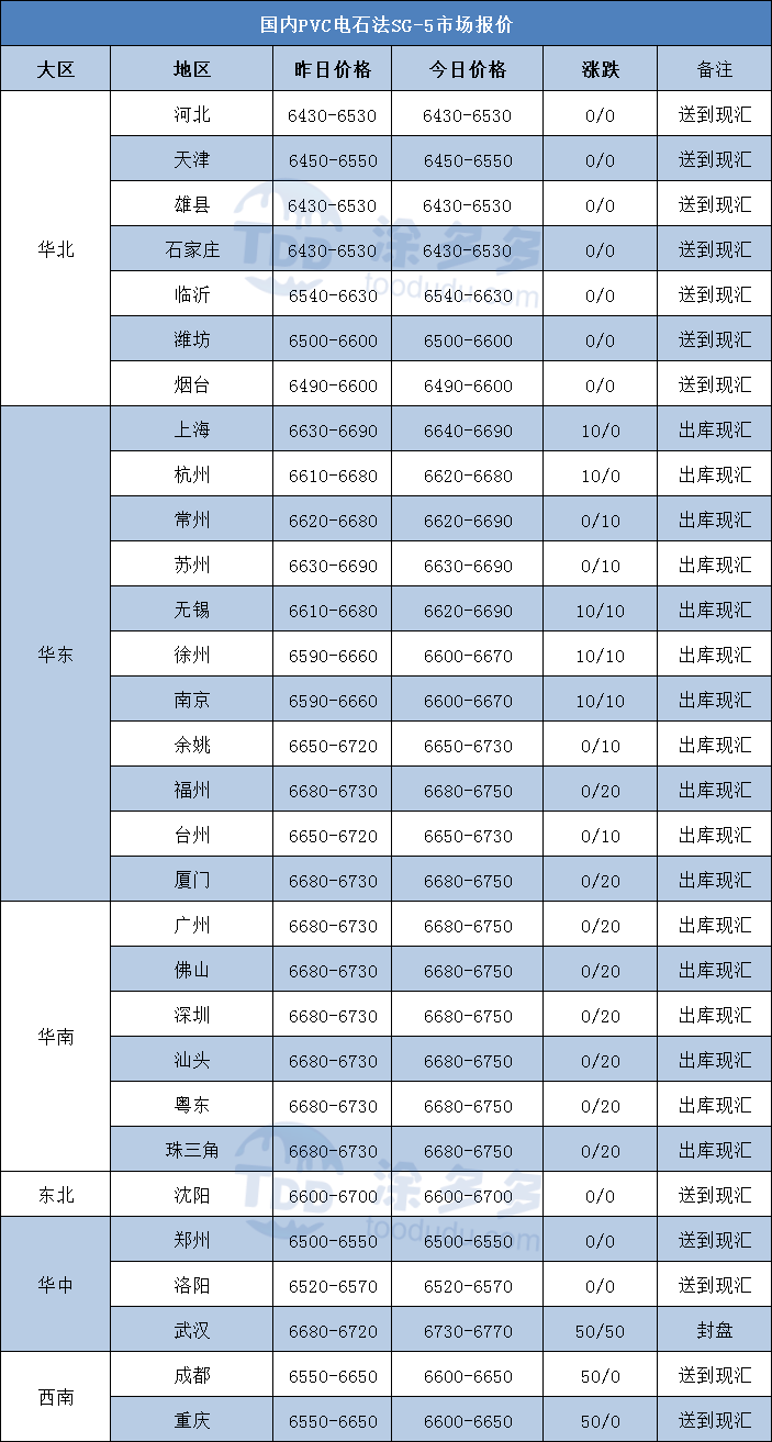 PVC市場主流成交價格小幅上漲,實際出貨維持前期